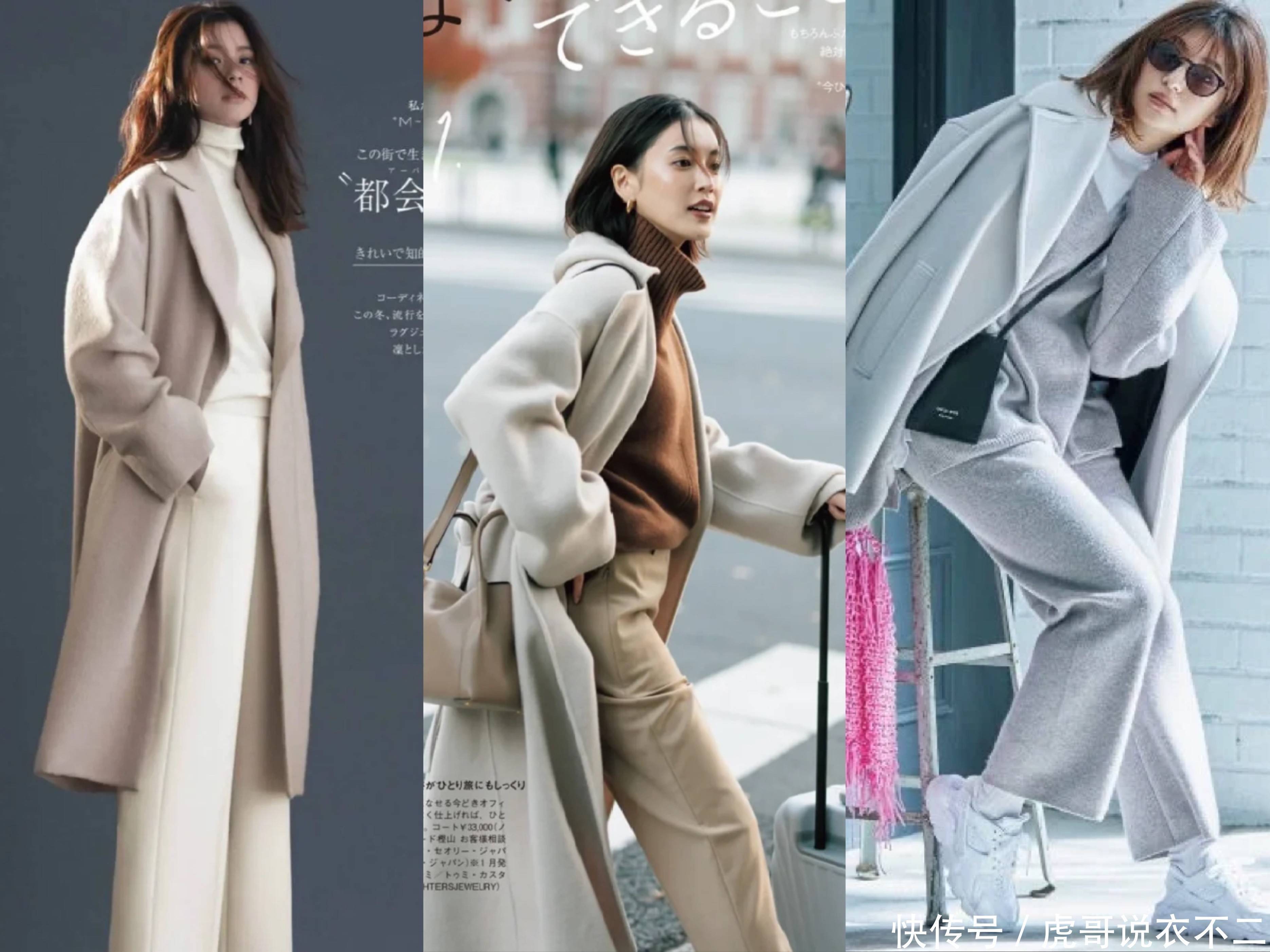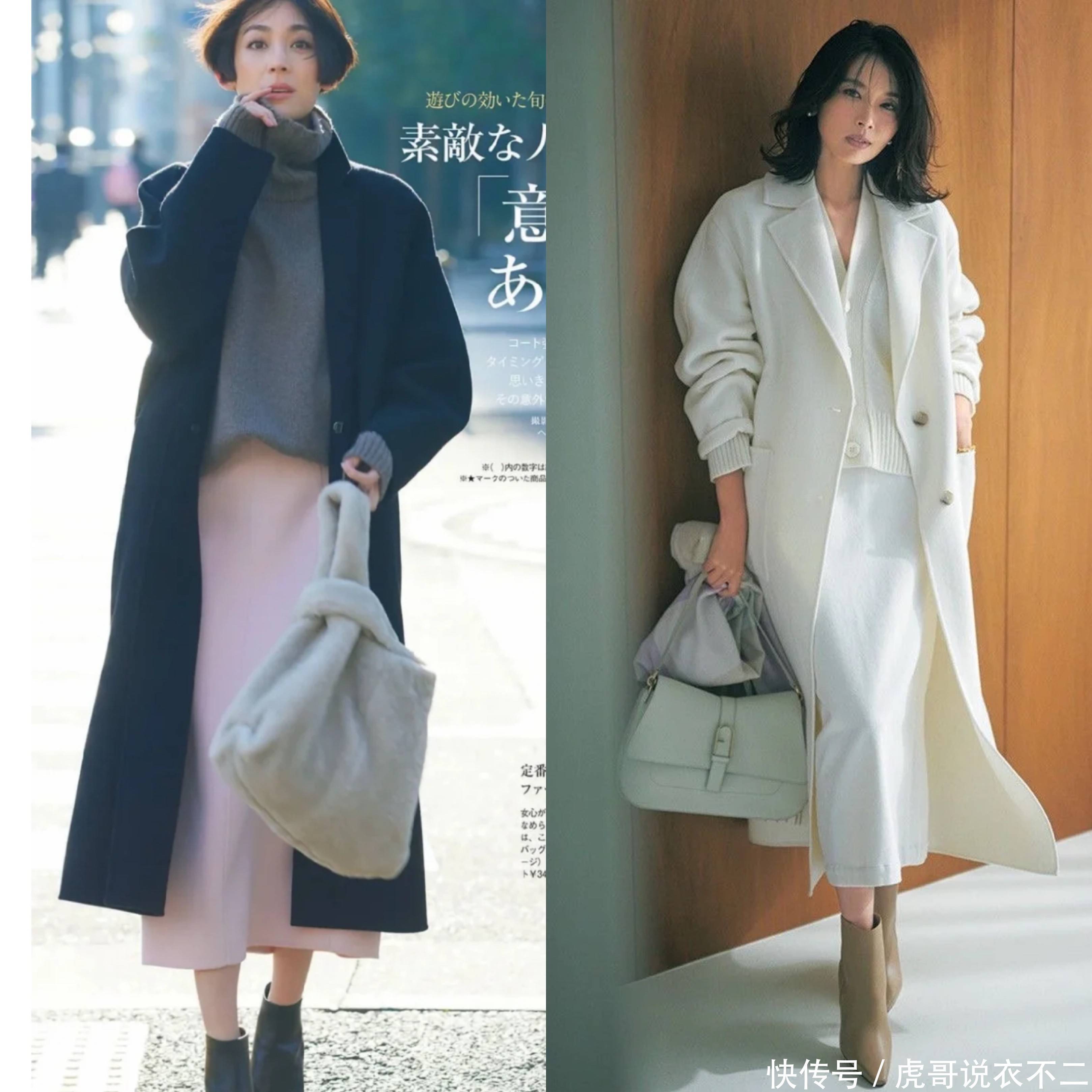 二、大衣的搭配选择作为冬季的常见外套,大衣的搭配选择同样很丰富,无论是裤装还是裙装,都能通过不同的色彩组合,以及款式搭配,打造优雅高级的气质。