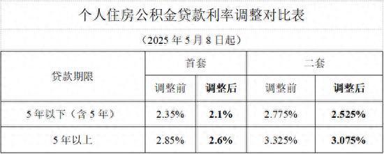 根据2025年5月7日发布的《中国人民银行关于下调个人住房公积金贷款利率的通知》,自2025年5月8日起,下调个人住房公积金贷款利率0.25个百分点,5年以下(含5年)和5年以上首套个人住房公积金贷款利率分别调整为2.1%和2.6%。5年以下(含5年)和5年以上第二套个人住房公积金贷款利率分别调整为2.525%和3.075%。