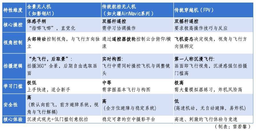 传统无人机市场已高度分化:追求画质与稳定的航拍机、追求沉浸与速度的FPV穿越机。二者分处两条平行赛道,界限清晰。