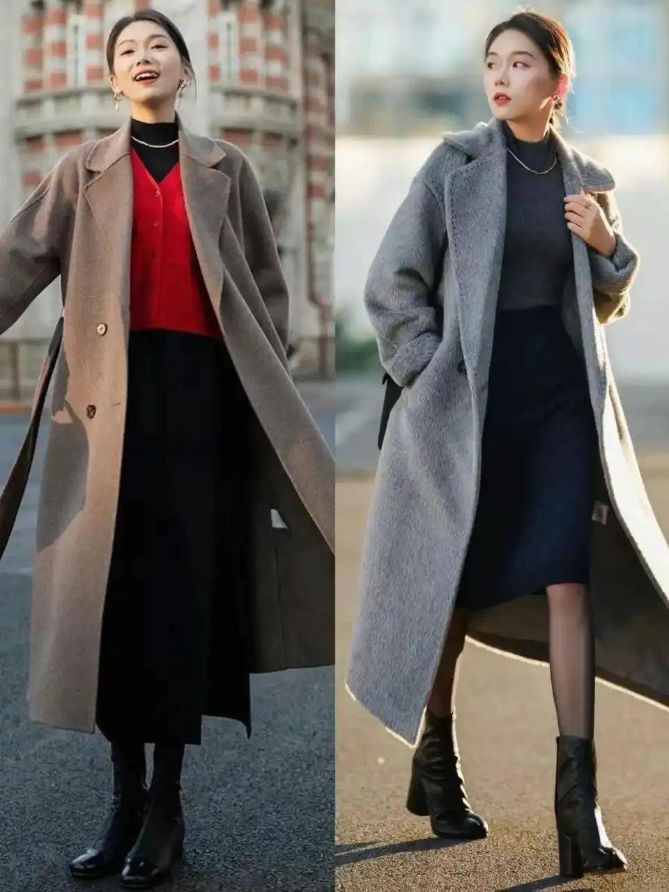 寒冷的冬天怎么能少了一件大衣外套呢?不管是短大衣还是长大衣,搭配上裙子确实更有气质,而且显瘦不会显得臃肿。