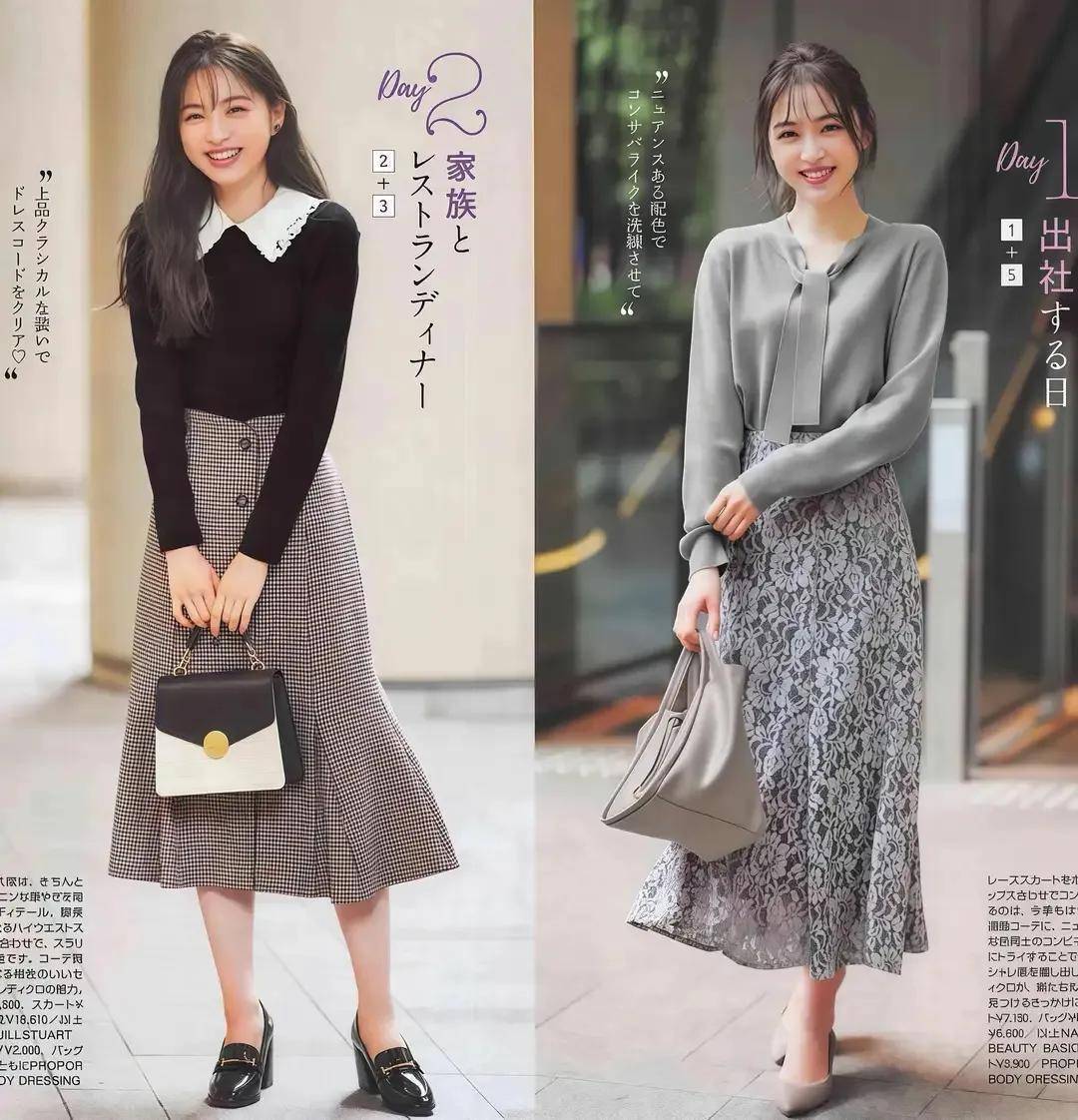 当然,就算我们穿的是一条半身裙,已经盖过膝盖了,但是裙子的长度过长,盖到脚踝的位置,甚至不是高腰收腰款,穿在身上就会显得拖沓邋遢,其实没有想象中的那么精神。上面第一套格纹的半身裙就是这种情况。