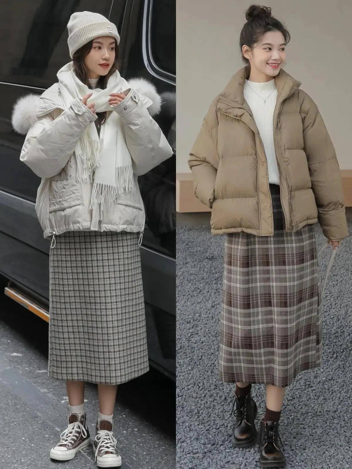 想让自己的穿衣打扮比较休闲的情况下,还可以选择一双帆布鞋,搭配上格纹的直筒半身裙和灰白色的羽绒服,这样的搭配确实很甜美,所以不同的年龄需要不同的穿法,千万不要盲目跟风,一定要知道自己属于什么类型的女性,是偏成熟,还是偏可爱的风格。
